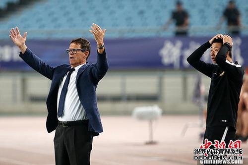 同是大牌教练的卡佩罗,在中超的经历则难言成功。(资料图:卡佩罗曾率领江苏苏宁征战中超联赛 中新社记者 泱波 摄) 。